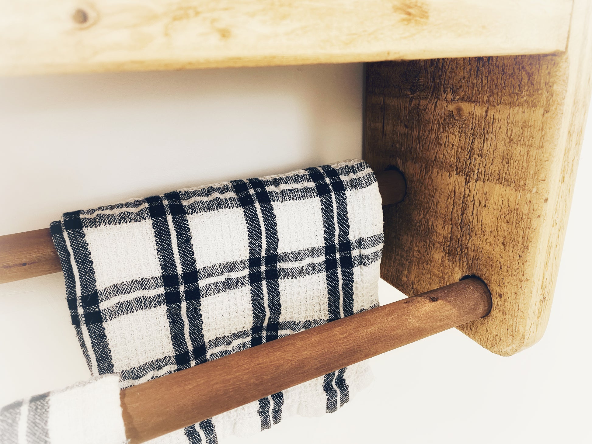 The perfect storage solution to tidy up your Kitchen. A simple and effective way to hang your tea towels and a place for your kitchen essentials.